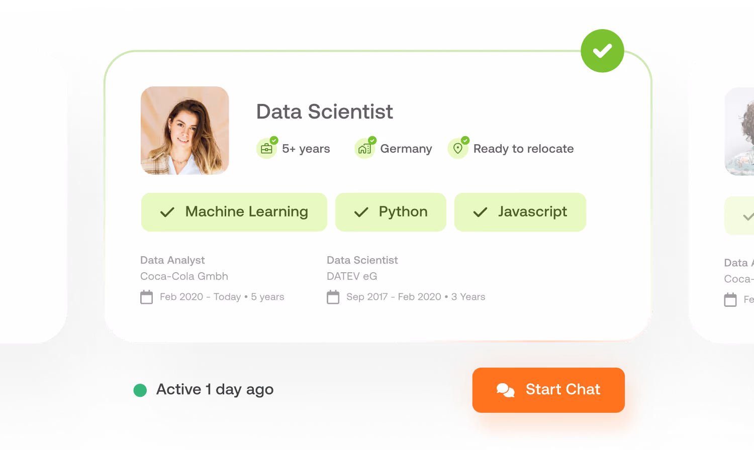 Instaffo is not a traditional job board or headhunter. We combine intelligent matching technology with an actively managed talent pool. As soon as you post a job, you immediately receive suitable, pre-qualified candidates.