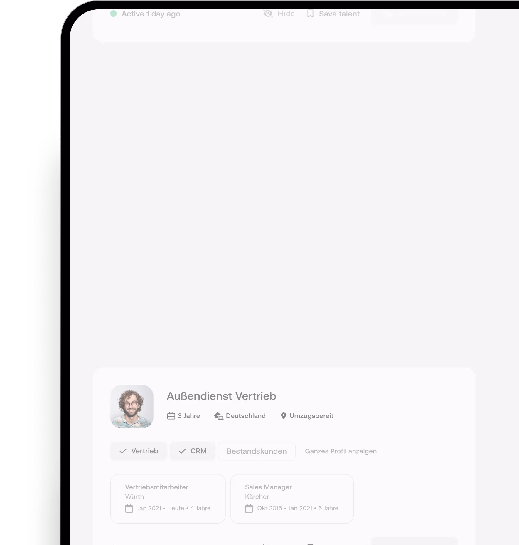 Entdecke Talente, die exakt zu deiner Stelle passen - basierend auf Skills, Gehalt, Standort & mehr.
