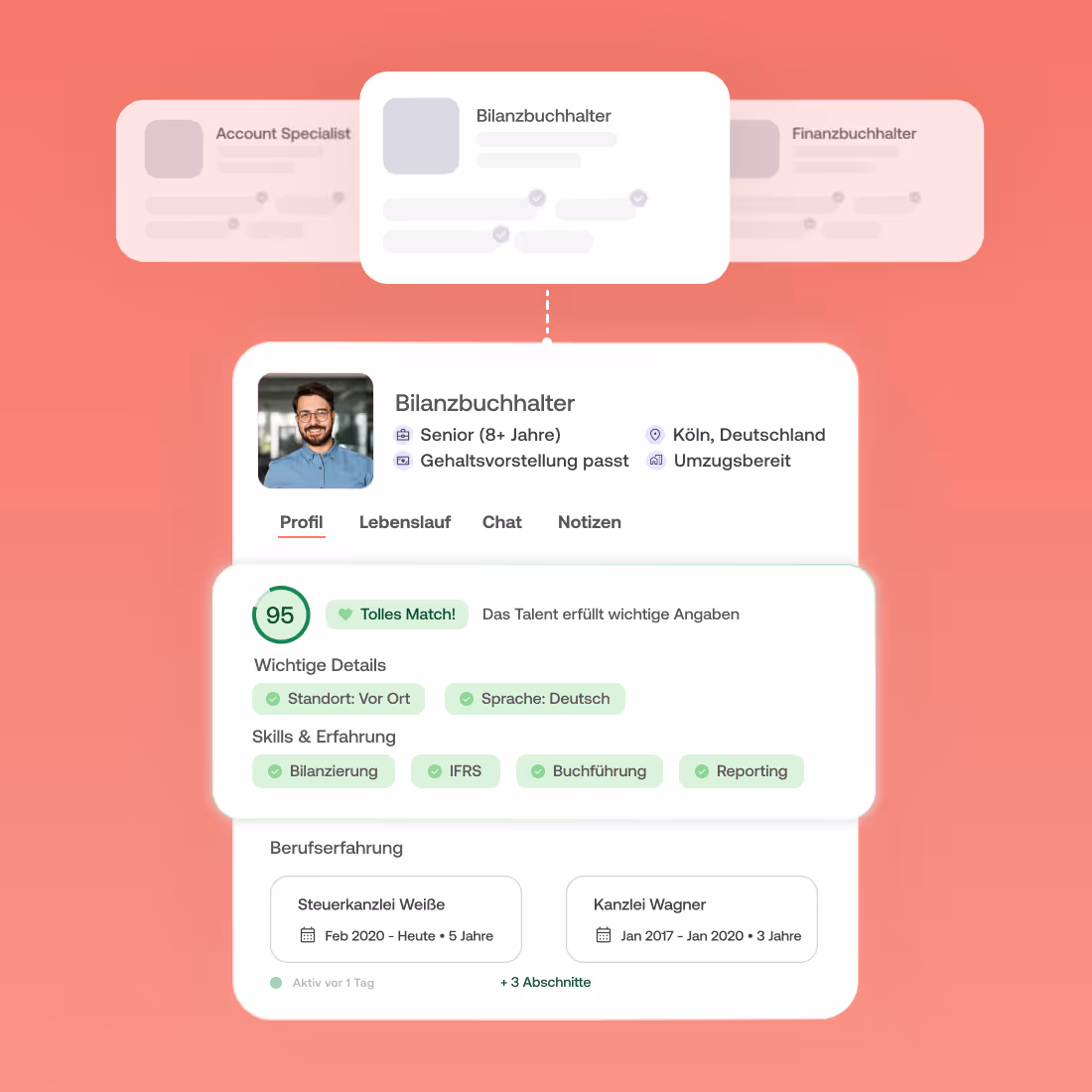 Entdecke Talente, die exakt zu deiner Stelle passen - basierend auf Skills, Gehalt, Standort & mehr.